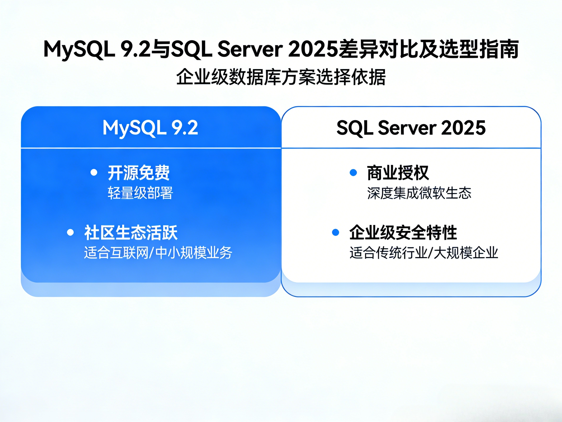以当前主流的两种方案为例,MySQL 9.2 与 SQL Server 2025 分别代表了开源轻量路线与企业级集成路线。在很多项目初期,团队往往更关注“能不能用”,但随着业务规模扩大,数据库的性能边界、扩展能力以及管理复杂度,都会逐渐成为核心问题。
