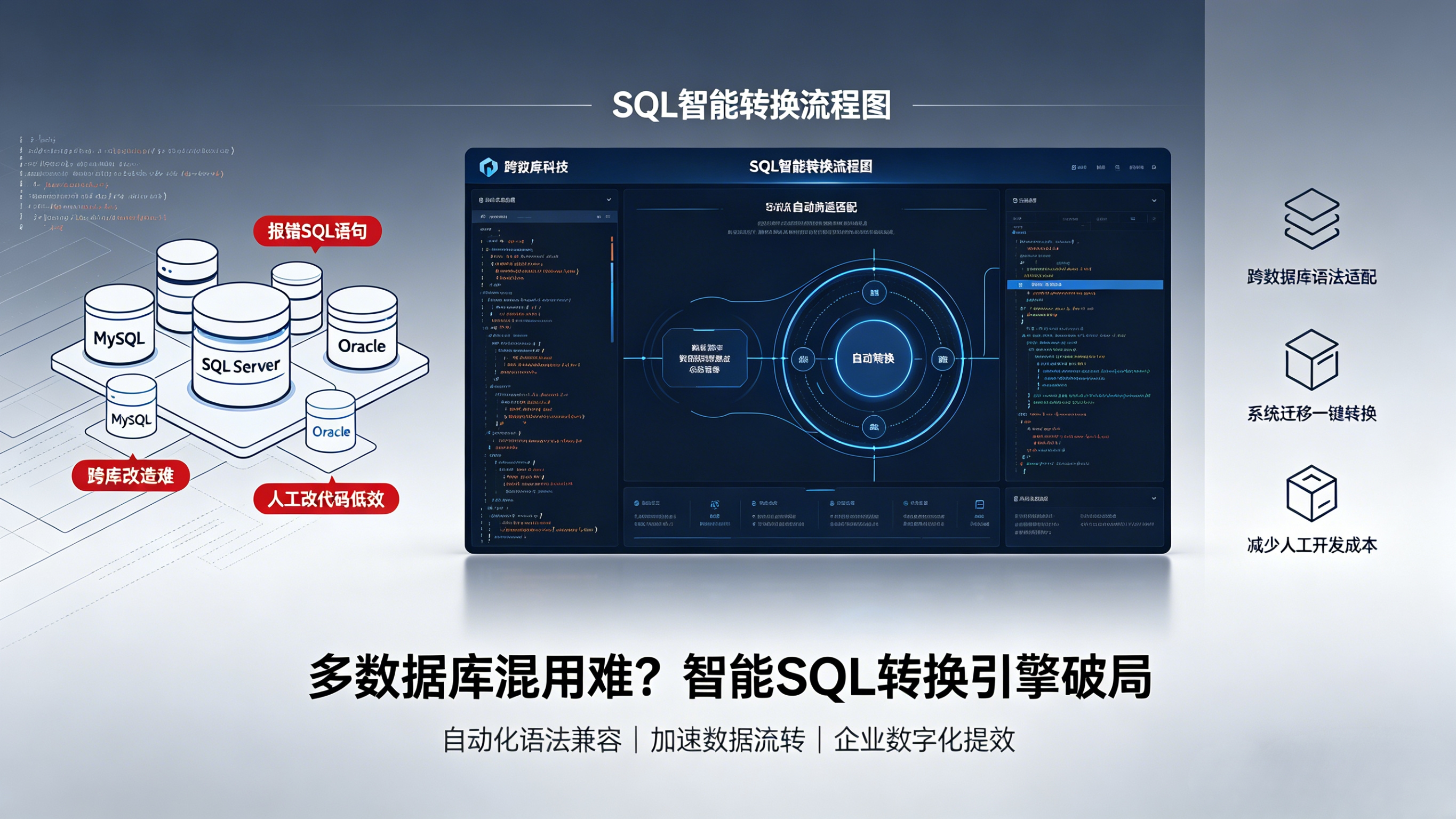 不过在实际使用中,很多企业都会遇到一个越来越明显的问题:数据系统越来越多,但数据调用却越来越慢。尤其是在多系统并行、跨数据库运行的情况下,SQL语句不仅需要编写,还需要适配不同数据库语法,这使得原本简单的数据查询,变成了一个需要反复沟通和调整的过程。于是,“数据库SQL转换工具”“SQL自动转换工具”“跨数据库语法转换”等需求开始被越来越多企业关注。